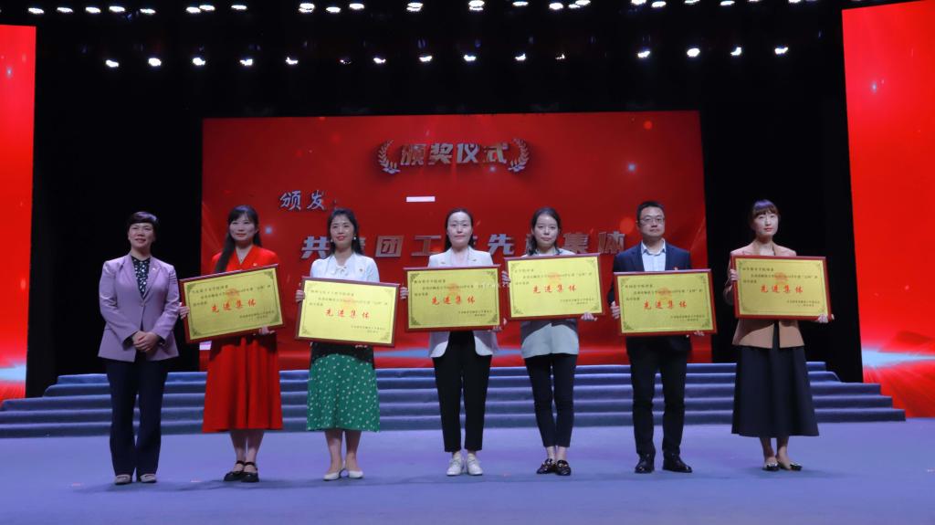 张艳及各职能部门负责人为2023—2024学年度gg999策略手机白菜共青团系统先进集体和个人获奖代表颁奖。