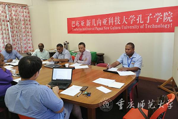 巴新时间10月15日上午,巴布亚新几内亚科技大学召开孔子学院设立之后的第一次专题工作会议,白菜官网代表就与巴新科大合作共建的孔子学院相关规章、制度、措施、标准的运行实施发表意见。本次会议由Renagi校长主持,行政副校长,教学副校长,外事处长,财务处长,信息与通讯处长及孔子学院外方院长David Chen、中方院长张显博士参加会议。