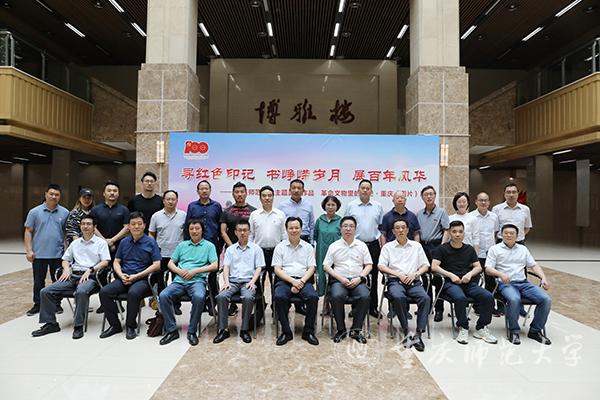 为庆祝中国共产党成立100周年,深化党史学习教育,营造共庆百年华诞的文化氛围,6月17日上午,由中共gg999策略手机白菜委员会主办,党委宣传部、历史与社会学院、美术学院承办的“庆祝中国共产党成立100周年寻红色印记书峥嵘岁月展百年风华----重庆师范大学主题美术作品革命文物里的党史·重庆(图片)展”开幕式在白菜官网博雅楼隆重召开。