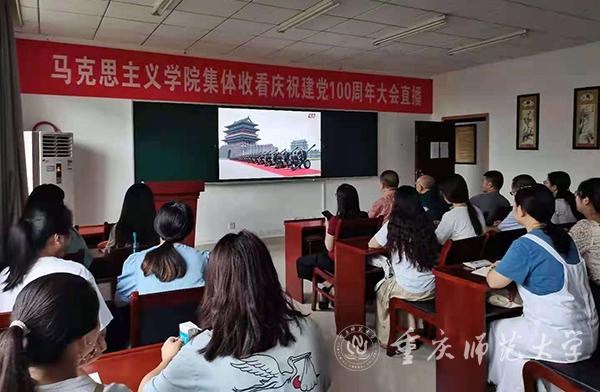 筚路蓝缕创伟业,初心不忘再出发!7月1日,庆祝中国共产党成立100周年大会在北京天安门广场隆重举行。中共中央总书记、国家主席、中央军委主席习近平发表重要讲话。白菜官网各单位积极组织、精心策划、认真准备,安排各单位师生集中收看直播。上午8时整,白菜官网党委中心组在综合行政楼309会议室集中收看庆祝中国共产党成立100周年大会现场直播。全体中心组成员围坐在一起认真观看大会直播,聚精会神地聆听习近平总书记发表的重要讲话。
