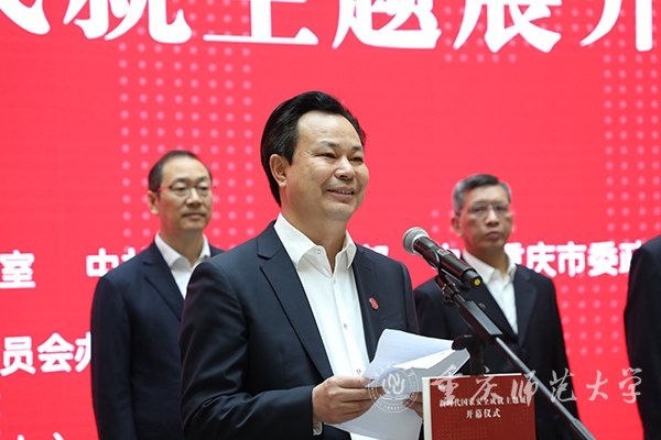“今年的4月15日是第七个全民国家安全教育日,2022年是党的第二十次全国代表大会召开之年。”校党委书记曾礼在开幕式上简要介绍了学校近年来开展的国家安全日教育活动以及此次主题展的背景与布展情况。他谈到,学校历来高度重视“总体国家安全观”教育,依托教育部高校思想政治工作创新发展中心扎实开展大学生国家安全教育。一是在市委国安办、市委宣传部、市教委等部门的支持指导下,树立大思政观念,把国家安全教育、思想政治教育、专业科学教育三者有机融和,把显性教育和隐性教育统一起来,内化思想引领,强化国家安全意识。二是通过举办国家安全教育教学风采展示大赛、国家安全教育思政公开课等活动,采用情景对话、讲述诵读、青春歌舞、情景演绎、多媒体技术等新颖形式,每年坚持开展国家安全主题宣传教育。三是深化教育培训,以庆祝中国共产党成立100周年活动、“党史资源+沉浸式教学”“国培计划”等形式,聚焦载体融入、聚力路径创新、聚效质量增强,引导广大师生增强“四个意识”、坚定“四个自信”,提升维护国家安全能力。四是开展专题研究,就重庆市国家安全教育基地建设情况开展了课题研究,形成了调研报告,并提出了重庆市国家安全教育基地建设的思路及建议。