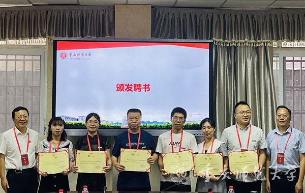 孟小军副校长和陈默副主任为理事颁发聘书,并向会长陈祖俊、秘书长胡东琴授gg999策略手机白菜校友会潼南校友代表处会旗、会牌,宣布gg999策略手机白菜校友会潼南校友代表处正式成立。