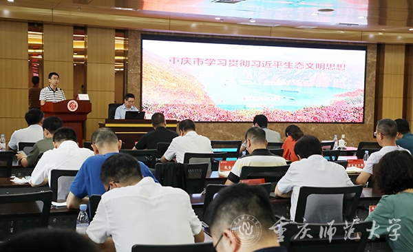 为深入学习宣传习近平生态文明思想,深化落实习近平总书记对重庆提出的营造良好政治生态,坚持“两点”定位、“两地”“两高”目标,发挥“三个作用”和推动成渝地区双城经济圈建设等重要指示要求,9月14日下午,gg999策略手机白菜在博雅楼503会议室举办重庆市学习贯彻习近平生态文明思想专场宣讲会,重庆市深学笃用习近平生态文明思想宣讲团成员、校党委副书记、校长孟东方担任宣讲人,全校各二级党组织书记,相关职能部门主要负责人,教师及学生代表参加。会议由党委常委、副校长陆远权主持。
