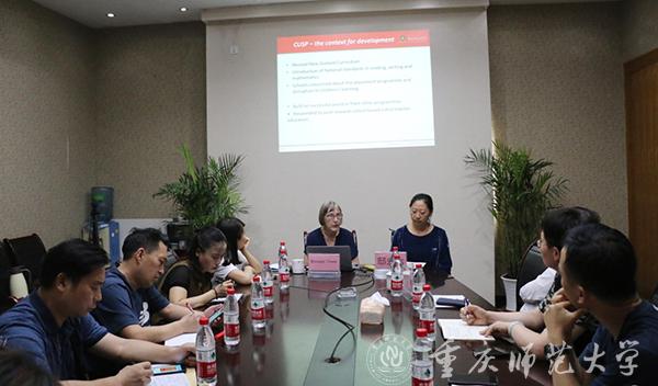 当日下午,Bronwen Cowie教授又作了题为“Collaborative university-school partnership (CUSP): From Promise to Praxis”的学术讲座。Bronwen Cowie教授从研究的理论基础入手,介绍CUSP研究项目的框架,详解在这一项目中新西兰大学和小学之间合作的具体细节,包括如何与小学校长签署协议、确立U-S合作中的中间人(boundary brokers)、大学教师和小学教师如何共同制定实习指导计划、开设实习课程、在小学确立助理讲师等,并介绍CUSP研究项目五年来的成果和进展,与参会教师交流U-S合作中的难点。