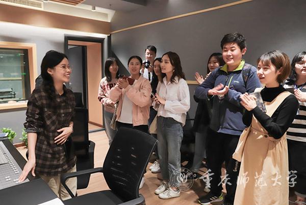 参会的全体研究生还参观了华龙网的录音棚、演播厅、重庆互联网空间资源指挥调度中心和融媒体新闻中心。