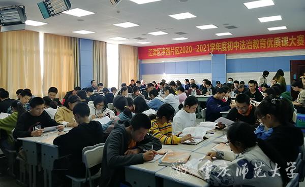 活动第一阶段是观摩教学和评课。历史系老师和江津八中历史组老师首先共同观摩了优秀教师杜舟的课堂教学——“两宋的政治与军事”。杜老师以小组形式开展课堂教学,注重师生互动和问题探究。历史系老师从中学习到中学一线新教材、新教法的宝贵教学经验。评课环节中,先由杜老师说课,再由历史系老师点评杜老师的教学活动,同时,双方老师深入探讨教学内容中的学术问题,如宋代军事是否不堪一击等。