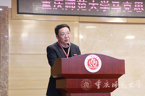 大会在学院宣传短片中拉开帷幕。在庄严的国歌声中,会议分三个阶段举行。第一阶首先由马克思主义学院院长陈洪致欢迎辞。他向到场的各位领导、老教师、同事和校友代表表示热烈欢迎和衷心感谢。他谈到,回首过去,正是有一代代马院人的砥砺前行、接续奋斗,方使学院呈现蓬勃生机,取得累累硕果;立足当下,冀望广大校友以学院校友分会为桥梁,为深化学院改革创新、推动学校内涵发展凝心聚力、添砖加瓦;展望未来,全体重师马院人定当发扬优良传统、不断开拓进取,戮力谱写学院新的篇章、续写学院新的辉煌。