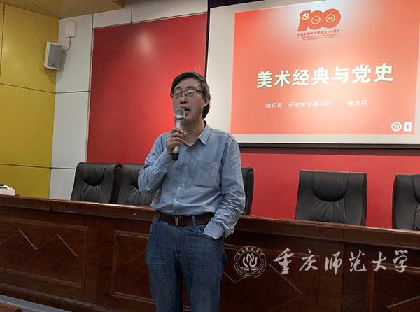 刘清泉书记在总结发言中表示,谢汝莉老师紧扣党史学习教育的时代主题,从美术经典中学习党史,将党史学习教育深度融入专业教育和艺术创作,体现了艺术专业党员的高度政治自觉。刘书记强调,大家要从党史和美术史尤其是美术经典作品中获得启迪,他希望全体党员带头树立正确的艺术创作观,创作出更多更好、人民喜闻乐见的艺术作品,描绘壮美的人生画卷。