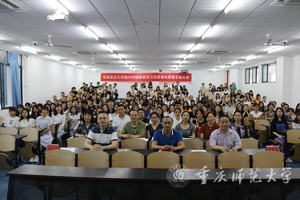 为引导2018级学生反思、总结实习活动,提升巩固师范生专业技能,自觉成为教师后备力量,2021年6月17日下午,马克思主义学院于砺志楼2402教室召开2018级思想政治教育实习总结汇报大会。马克思主义学院党委书记刘军、党委副书记方敏、副院长况明安、政教系主任祝玉峰、政教系副主任郑瑜、教科办主任张晓庆、全体实习指导老师和2018级辅导员出席本次大会,2018级全体实习生参加。