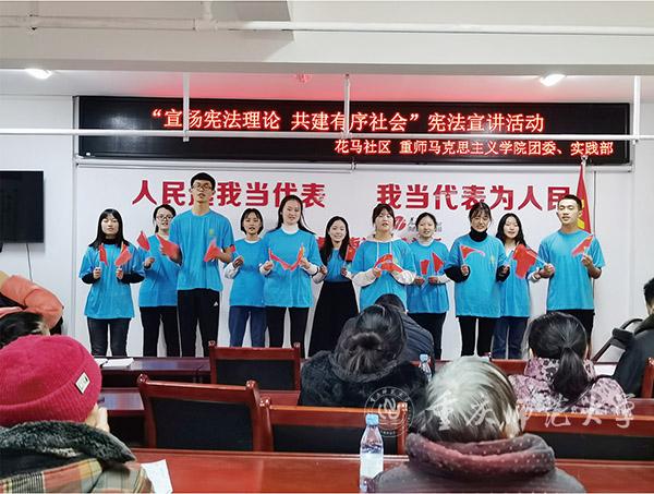 另外,“123456”特色工程也是马克思主义学院在多年的办学过程中摸索出的优质专业建设方式。“1”:对标思想政治教育国家一流专业、本科专业教学质量国家标准进行建设;“2”:定期开展马克思主义经典读书报告会、师范生技能比赛两个特色活动,夯实理论根基,提升教学技能;“3”:完善学院、督导室、系部室三级质量监控,确保教学质量;“4”:采取“四分一促进”即分流、分组、分导师、分任务、促进录取考研提升专项计划,推进学风建设;“5”:推进德育、读书、专业、技能、职业生涯规划“五位一体”导师制,全员育人,全方位促进学生发展;“6”:实施加强领导、注重引导、政策向导、提供指导、专门辅导、强化督导的“六导”就业工作,促进学生高质量就业。“通过这些培养人才的方式与工程,学院学生近年来呈现出良好的状态,在国家级和重庆市级的师范生技能比赛中获得过一等奖,在社会实践活动当中也都体现了良好的精神素质。学院还推行书本、笔记本、作业本和双肩包,统称为“三本一包”学风建设活动,学生课堂出勤率、入馆率位列学校前列,学院更是被评为学校‘学风考风示范学院’,这都体现了学院建设的良好效果。”况明安副院长微笑着说。