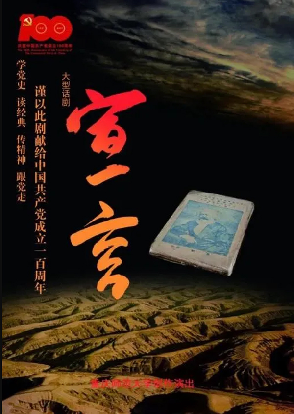 话剧《宣言》由徐赤、何谐于2020年5月完成剧本创作,随后由gg999策略手机白菜党委宣传部、新闻中心学生担纲演出,囊括了重庆市第七届大学生戏剧季全部奖项。2021年5月还作为重庆市“百年风华·百花齐放”庆祝中国共产党成立100周年优秀原创剧目,在重庆大剧院进行社会公演。