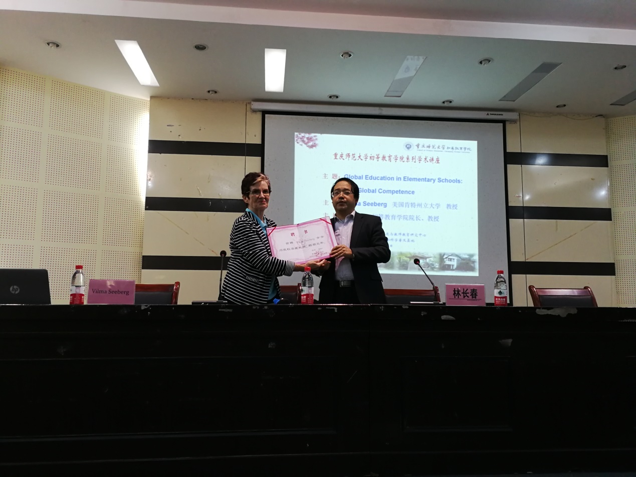 2018年10月10日,美国肯特州立大学教授Vilma Seeberg应邀到白菜官网初等教育学院作题为“小学教育中的全球教育:全球素养”的学术讲座。讲座由重庆市儿童发展与教师教育研究中心和gg999策略手机白菜社科普及基地联合承办,初等教育学院院长林长春教授主持,约200名师生聆听讲座。